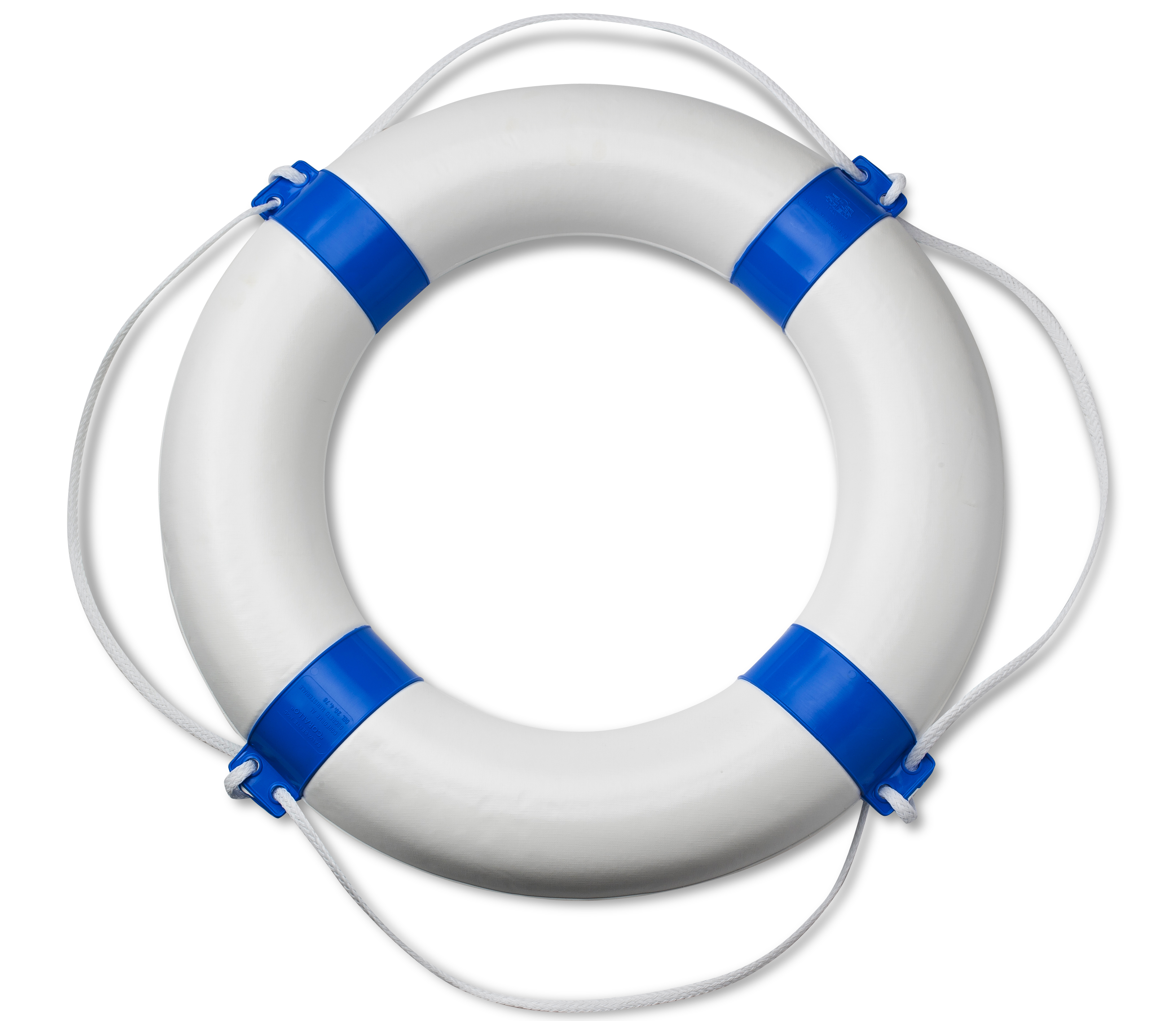 Dieser Bootsring verfügt über einen PVC-Überzug und eine Randleine.