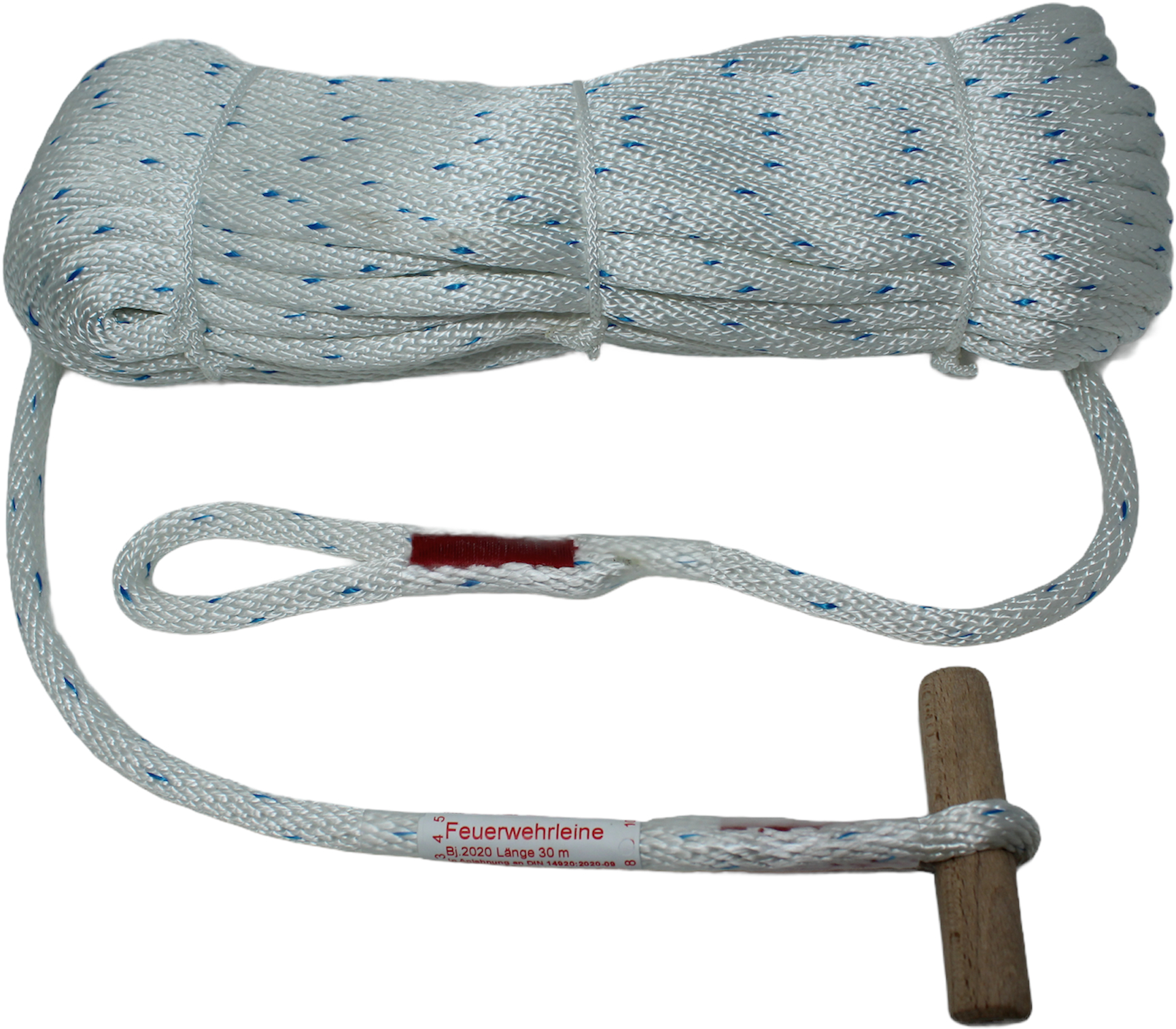 20 m Länge - daher nicht normgerecht(Feuerwehrleinen unter 30 m entsprechen nicht der Norm)