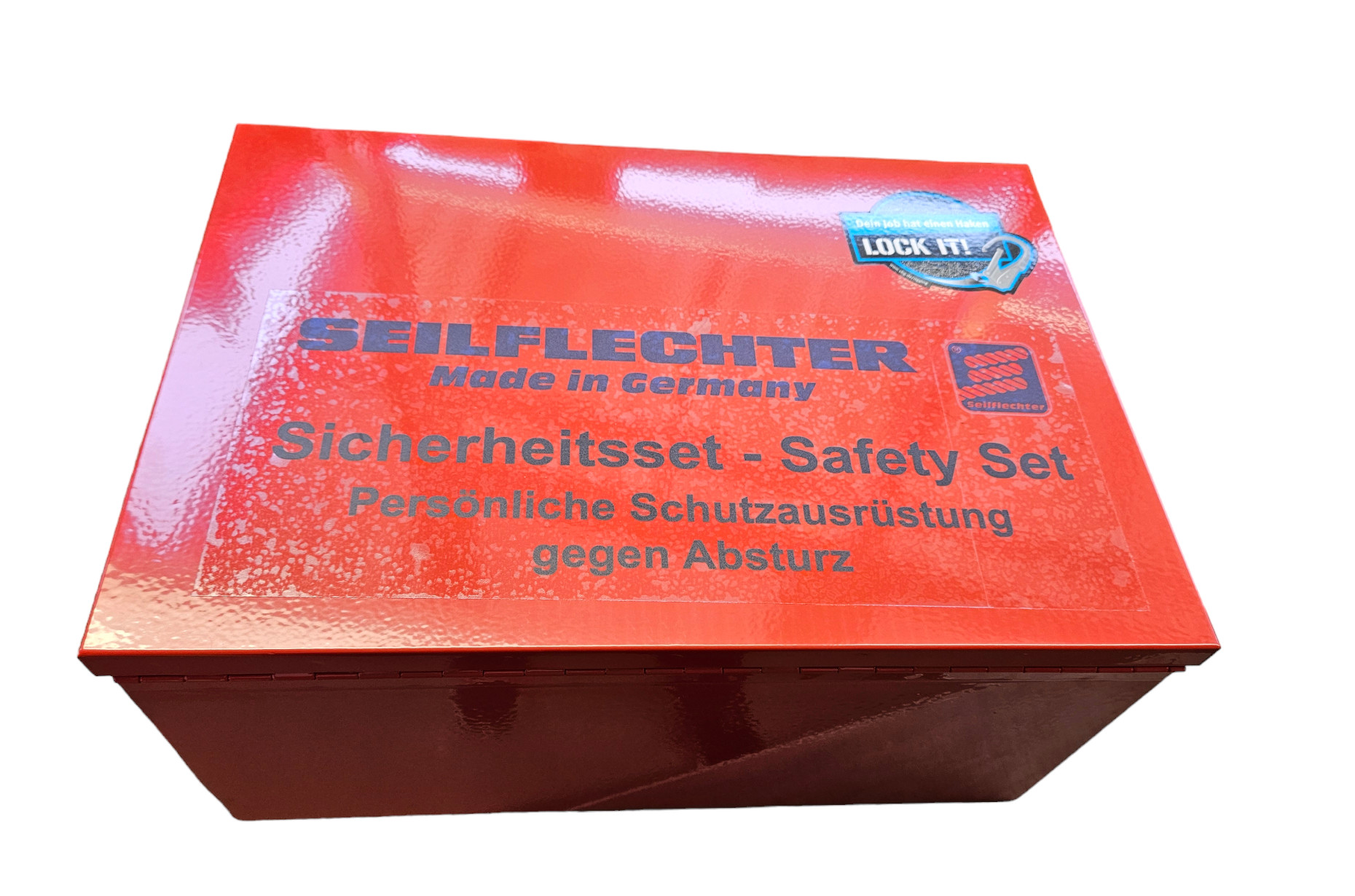 In der Metallbox verschließbar zur Vermeidung unbefugter Nutzung, so erhalten Sie das Seilflechter Safety Set - Ihr Rundum-Sorglos-Paket.