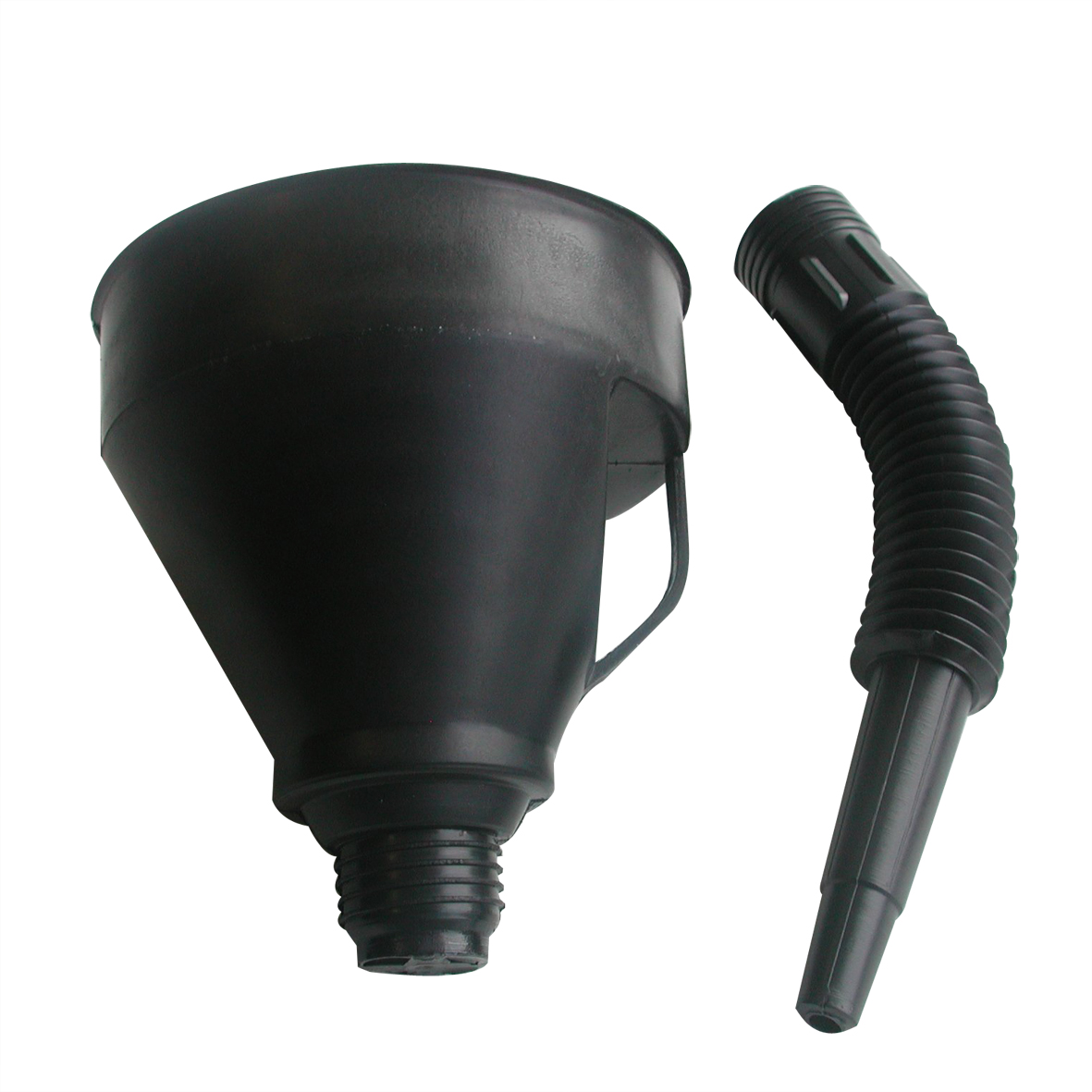 Der Trichter verfügt über ein flexibles Auslaufrohr, was das Be- und Umfüllen erheblich erleichtert.